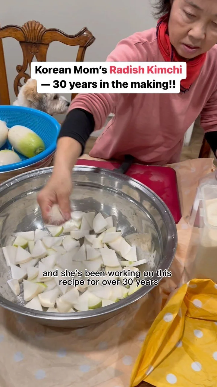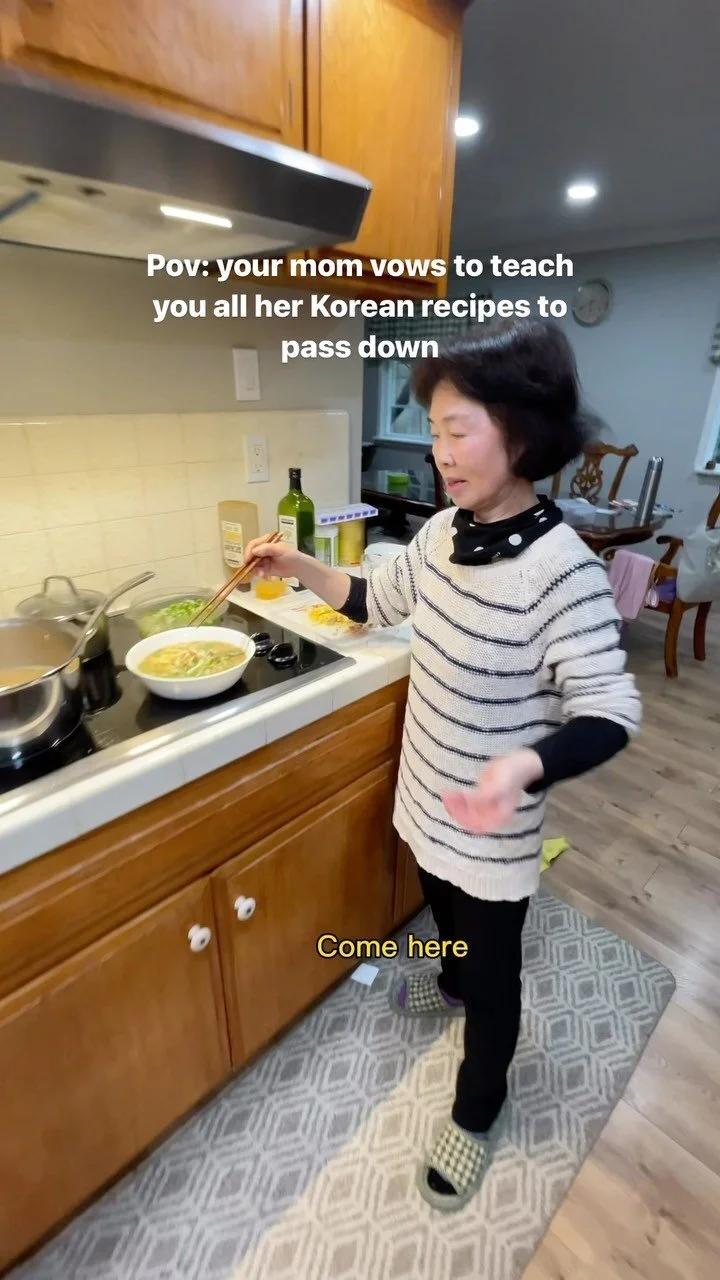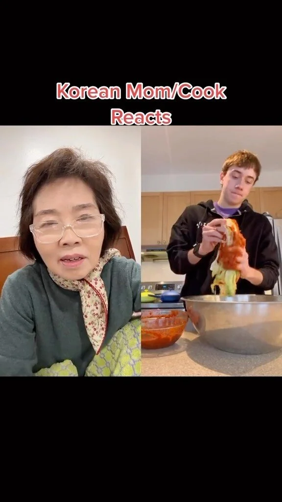 Entertaining content showing Korean mom and professional cook reacting to an amateur Korean-cooking enthusiast making kimchi.